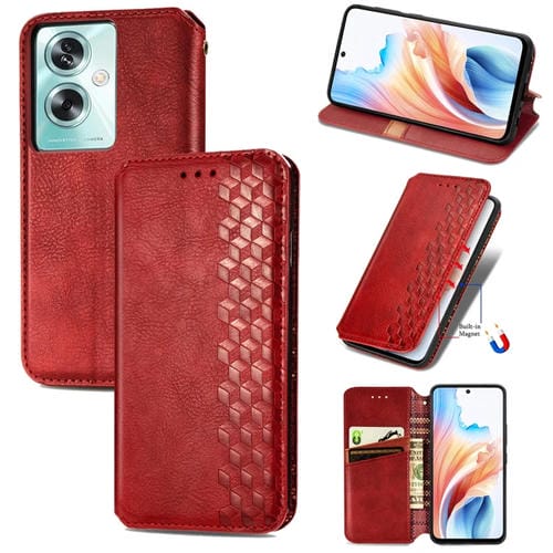 Para Oppo A79 5G / A2 5G Cubic Grid Funda de Teléfono de Cuero Magnético Prensado (Rojo)