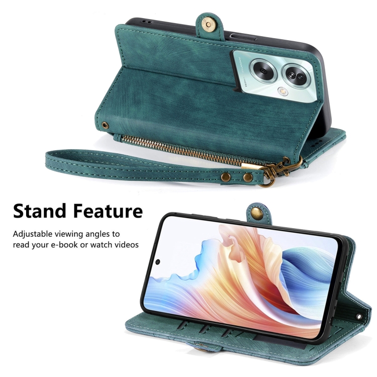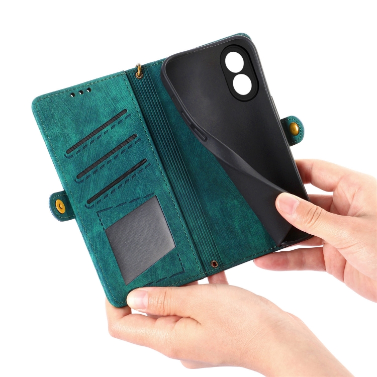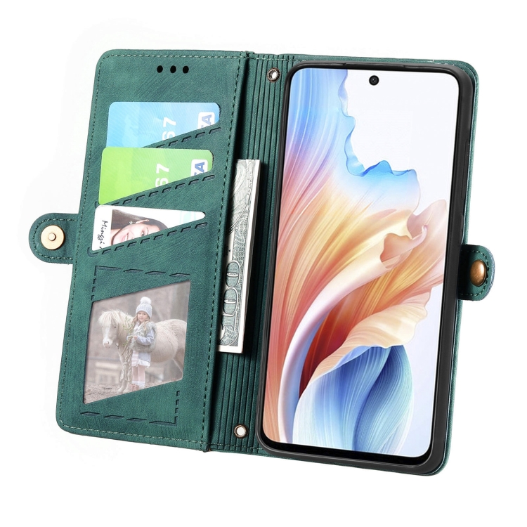 Para Oppo A79 5G / A2 5G Funda de Teléfono de Cuero con Hebilla Lateral y Billetera con Cremallera Geométrica (Verde)