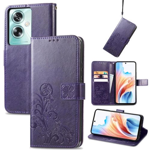 Para Oppo A79 5G / A2 5G Funda para Teléfono de Cuero con Hebilla En Relieve y Cierre de Cuatro Hojas (Púrpura)