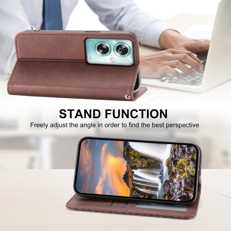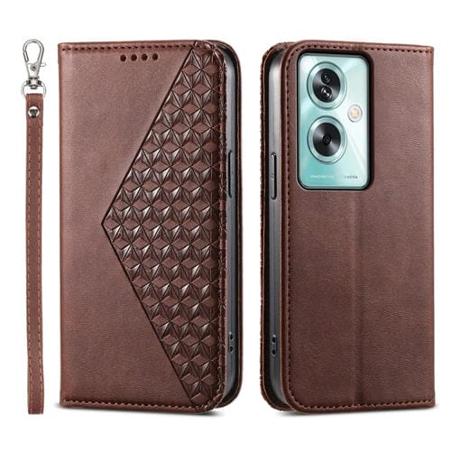 Para Oppo A79 5G Cubic Grid Calf Texture Funda de Cuero Magnética para Teléfono (Marrón)