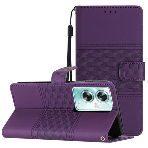 Para Oppo A79 5G Funda de Teléfono de Cuero con Sensación de Piel En Relieve de Diamante (Púrpura)