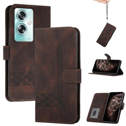 Para Oppo A79 Cubic Skin Feel Funda de Cuero para Teléfono con Tapa (Marrón)
