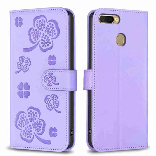 Para Oppo A92 / A72 / A52 Funda para Teléfono de Cuero con Relieve de Cuatro Hojas (Púrpura)
