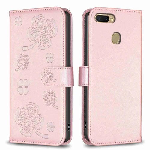 Para Oppo A92 / A72 / A52 Funda para Teléfono de Cuero con Relieve de Cuatro Hojas (Rosa)