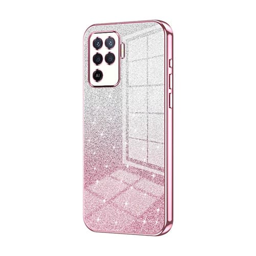 Para Oppo A94 4G Estuche para Teléfono Galvanizado con Polvo de Brillo Degradado (Rosa)
