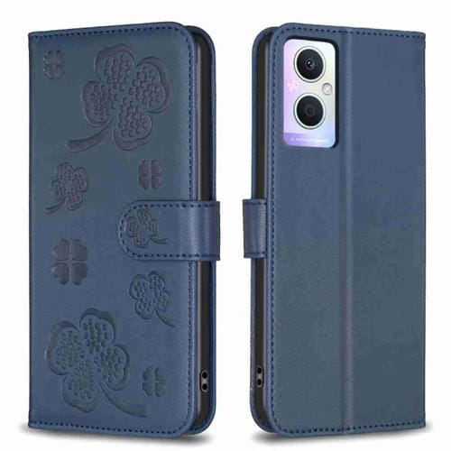 Para Oppo A96 5G / Reno7 Z Funda para Teléfono de Cuero con Relieve de Cuatro Hojas (Azul)