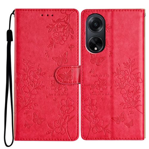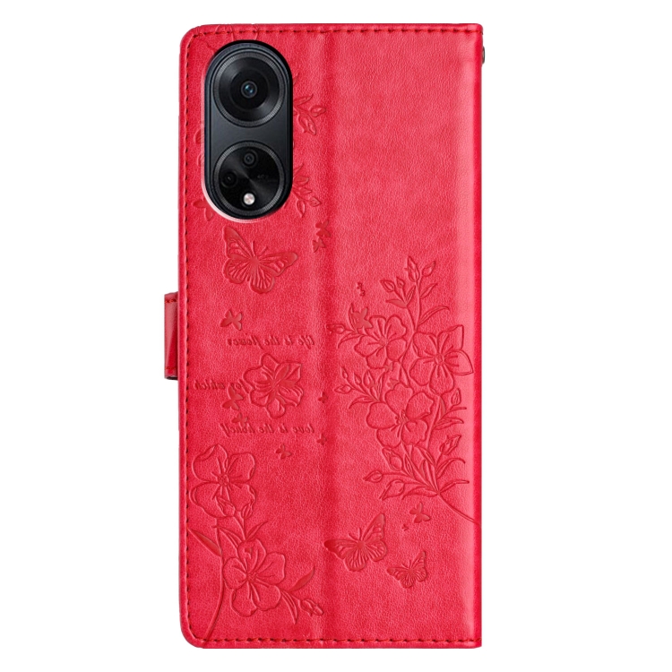 Para Oppo A98 Butterfly Love Flower Funda de Cuero para Teléfono En Relieve (Rojo)