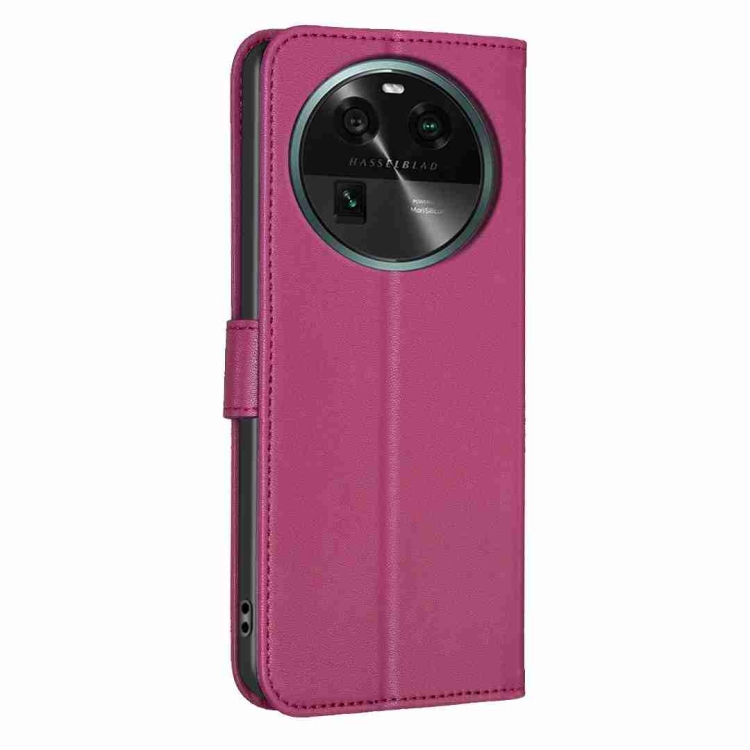 Para Oppo Find X6 Funda de Cuero con Relieve de Cuatro Hojas para Teléfono (Rojo Rosa)