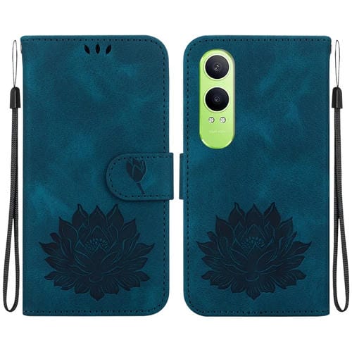 Para Oppo K12X Funda de Cuero con Relieve de Loto (Azul Oscuro)