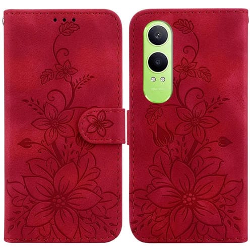 Para Oppo K12X Lily Funda de Cuero En Relieve para Teléfono (Rojo)