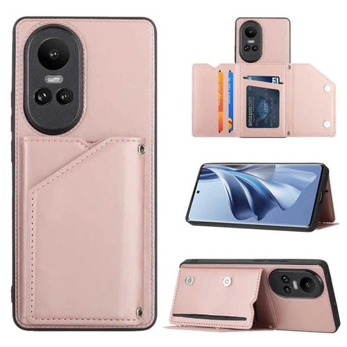 Para Oppo Reno10 / Reno10 Pro Global Skin Feel Pu + TPU + Funda para Teléfono con Ranuras para Tarjetas de PC (Oro Rosa)