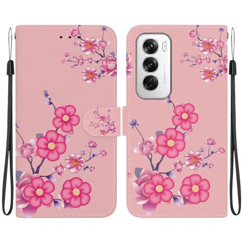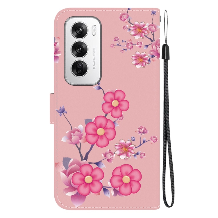 Para Oppo Reno12 5G Funda de Teléfono de Cuero con Dibujo Coloreado con Textura de Cristal Global (Flores de Cerezo)