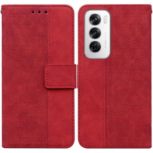 Para Oppo Reno12 5G Funda de Teléfono de Cuero con Relieve Geométrico Global (Rojo)