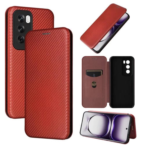Para Oppo Reno12 5G Funda de Teléfono de Cuero con Tapa con Textura de Fibra de Carbono Global (Marrón)