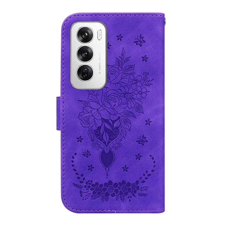 Para Oppo Reno12 5G Global Butterfly Rose Funda de Cuero para Teléfono En Relieve (Púrpura)