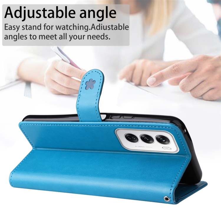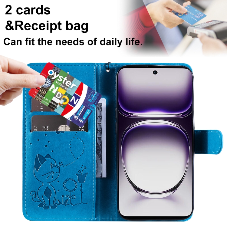 Para Oppo Reno12 5G Global Cat And Bee Funda de Cuero con Tapa En Relieve (Azul)
