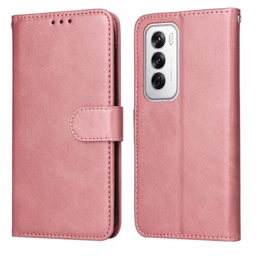 Para Oppo Reno12 5G Global Classic Calf Texture Funda de Cuero con Tapa para Teléfono (Oro Rosa)