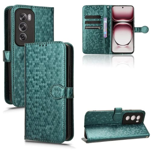 Para Oppo Reno12 5G Global Honeycomb Dot Texture Funda de Cuero para Teléfono (Verde)