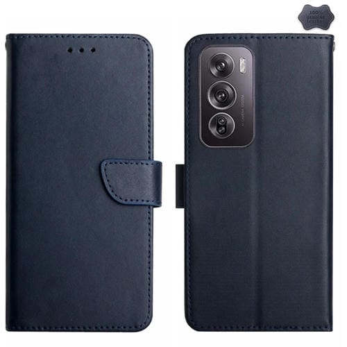 Para Oppo Reno12 5G Global Ht02 Funda para Teléfono con Tapa de Cuero Genuino a Prueba de Huellas Dactilares (Azul)