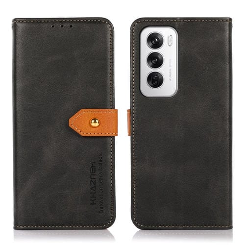 Para Oppo Reno12 5G Global Khazneh Funda para Teléfono de Cuero con Tapa con Textura de Piel de Vaca de Dos Colores (Negro)