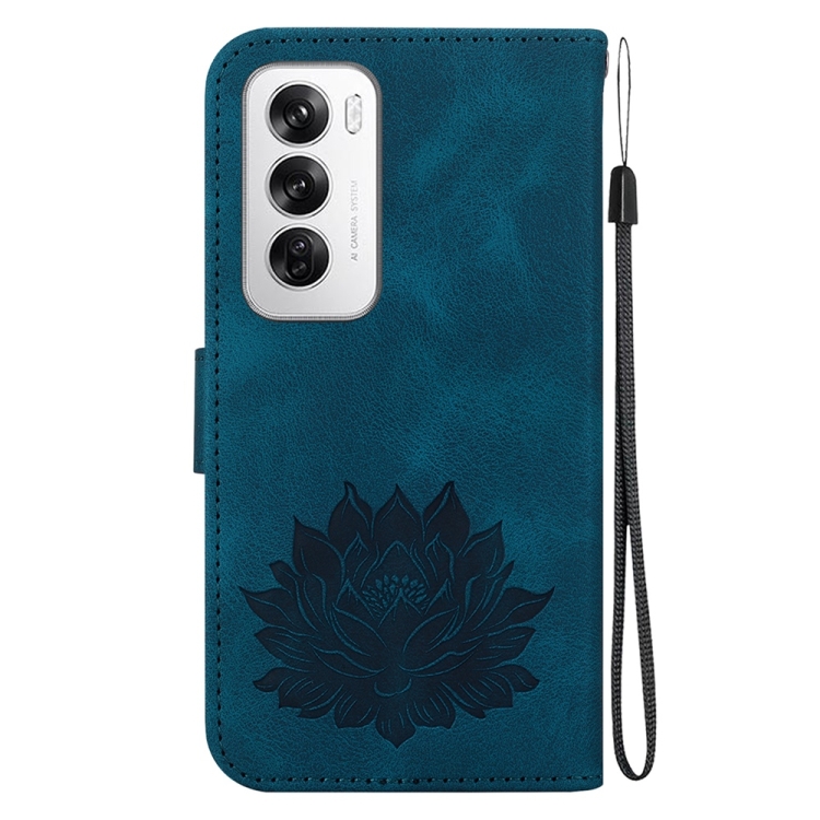 Para Oppo Reno12 5G Global Lotus Funda de Cuero En Relieve para Teléfono (Azul Oscuro)