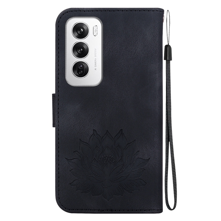 Para Oppo Reno12 5G Global Lotus Funda de Cuero En Relieve para Teléfono (Negro)