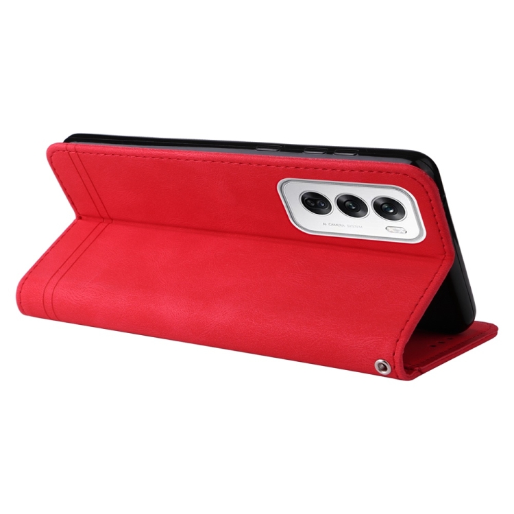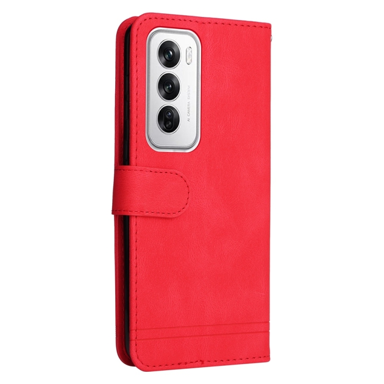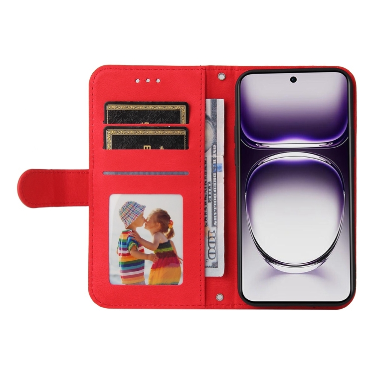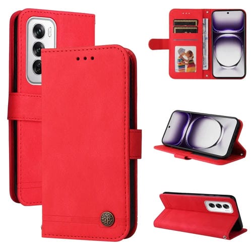 Para Oppo Reno12 5G Global Skin Feel Life Tree Funda de Cuero para Teléfono con Botón de Metal (Rojo)