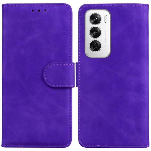 Para Oppo Reno12 5G Global Skin Feel Pure Color Funda de Cuero con Tapa para Teléfono (Púrpura)