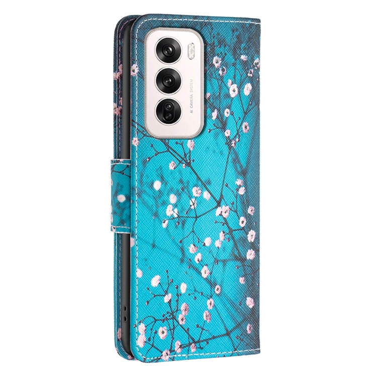 Para Oppo Reno12 Funda de Cuero para Teléfono con Patrón de Dibujo Coloreado Global (Flor de Ciruelo)