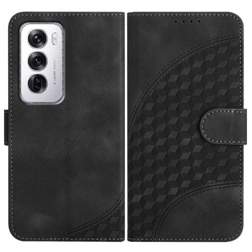 Para Oppo Reno12 Global Yx0060 Funda de Cuero para Teléfono con Relieve y Cabeza de Elefante con Cordón (Negro)