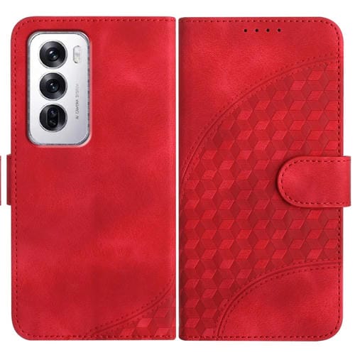 Para Oppo Reno12 Global Yx0060 Funda de Cuero para Teléfono con Relieve y Cabeza de Elefante con Cordón (Rojo)