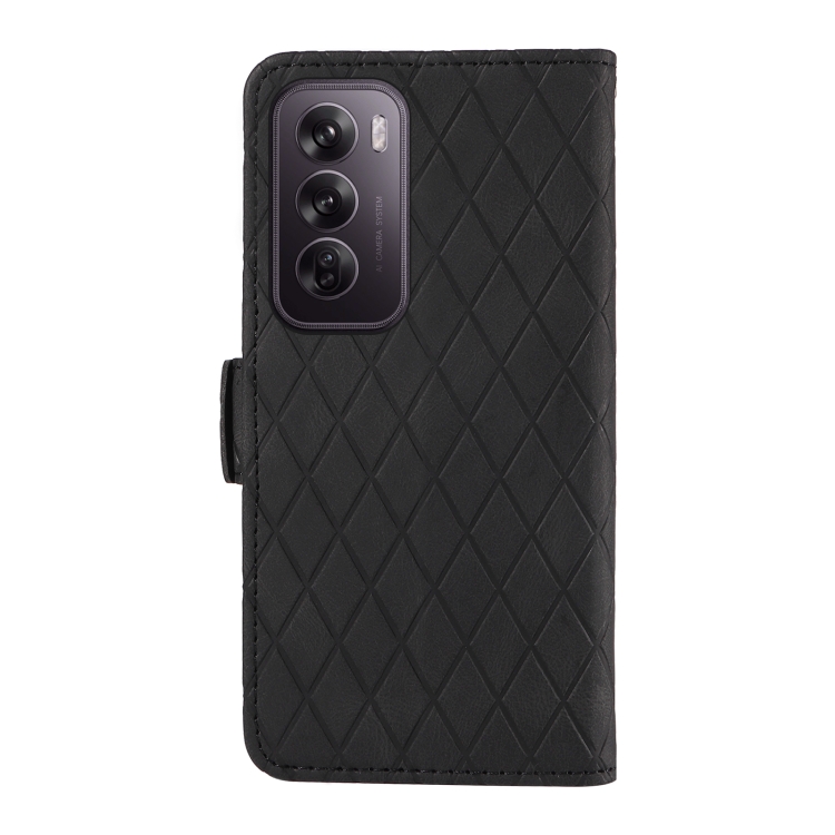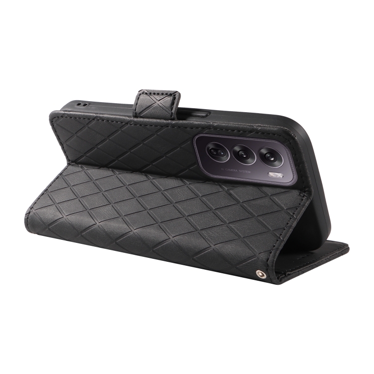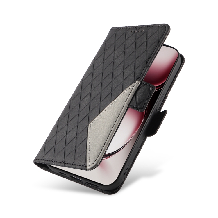 Para Oppo Reno12 Pro 5G Funda de Teléfono de Cuero con Entramado Rómbico Global de Dos Colores (Negro)