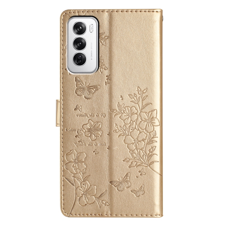 Para Oppo Reno12 Pro 5G Funda de Teléfono de Cuero con Relieve de Flor de Amor y Mariposa Global (Dorado)