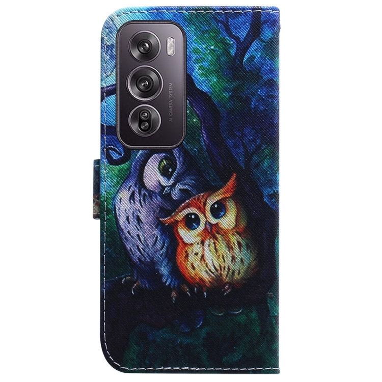 Para Oppo Reno12 Pro 5G Funda de Teléfono de Cuero con Tapa con Dibujo Coloreado Global (Búho de Pintura al Óleo)