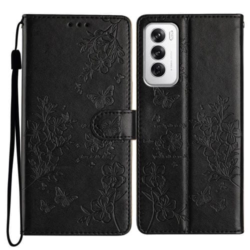 Para Oppo Reno12 Pro 5G Global Butterfly Love Flower Funda de Cuero para Teléfono En Relieve (Negro)