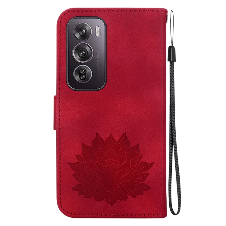 Para Oppo Reno12 Pro 5G Global Lotus Funda de Cuero En Relieve para Teléfono (Rojo)