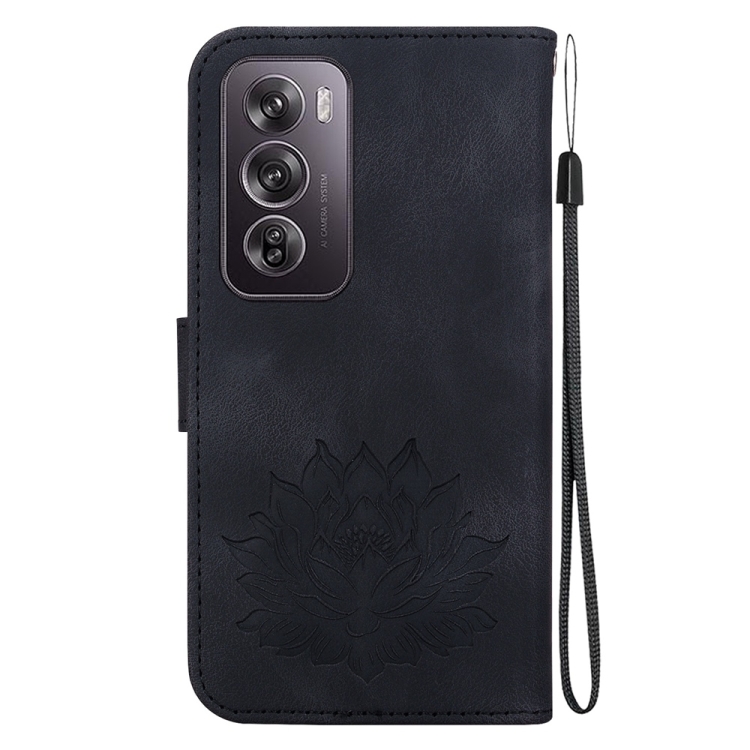 Para Oppo Reno12 Pro 5G Global Lotus Funda de Cuero para Teléfono En Relieve (Negro)