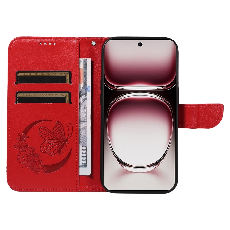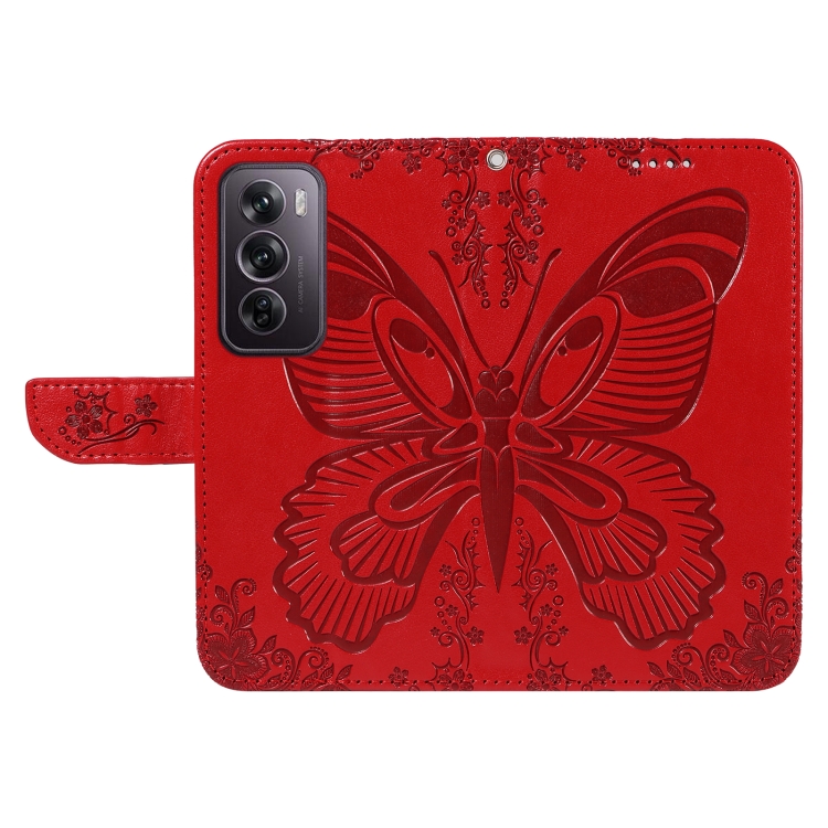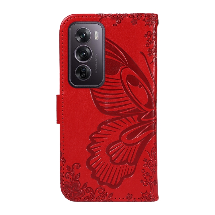 Para Oppo Reno12 Pro 5G Global Swallowtail Butterfly Funda de Cuero En Relieve para Teléfono (Rojo)