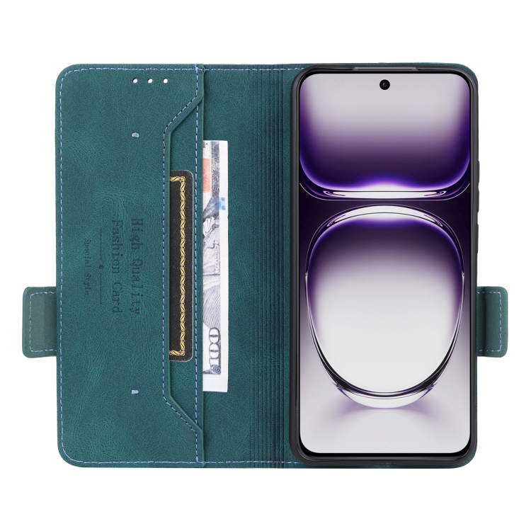 Para Oppo Reno12 Pro Funda de Cuero para Teléfono con Cierre Magnético Global (Verde)