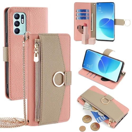Para Oppo Reno6 4G Crossbody Litchi Texture Funda de Cuero para Teléfono (Rosa)