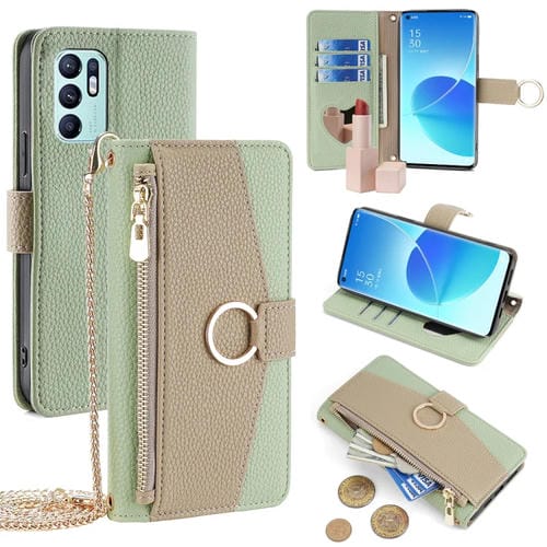 Para Oppo Reno6 4G Crossbody Litchi Texture Funda de Cuero para Teléfono (Verde)