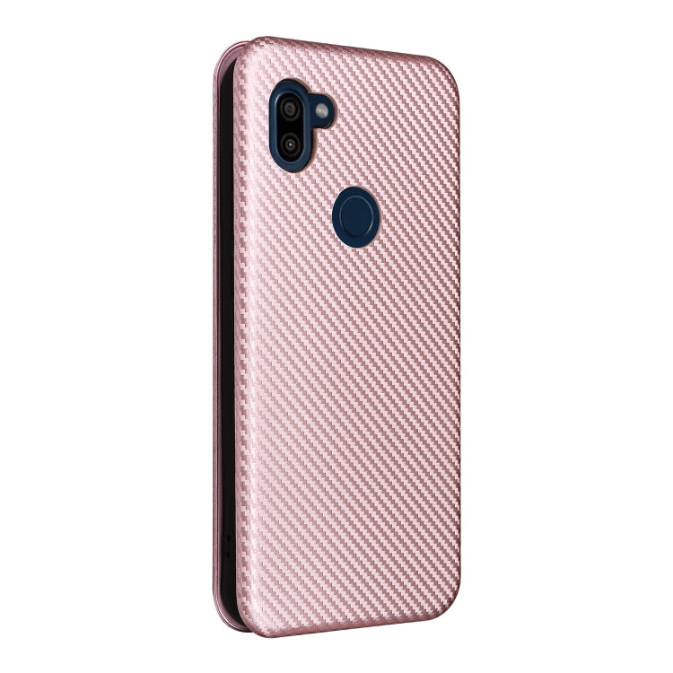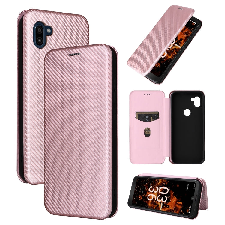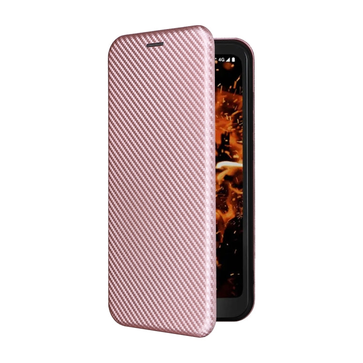 Funda de Cuero con Tapa para Orbic Fun + 4G con Textura de Fibra de Carbono (Rosa)