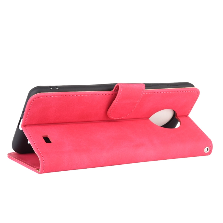 Funda para Oukitel C19 con Hebilla Magnética, Cuero PU Textura Becerro, Soporte y Ranuras (Rosa Roja)