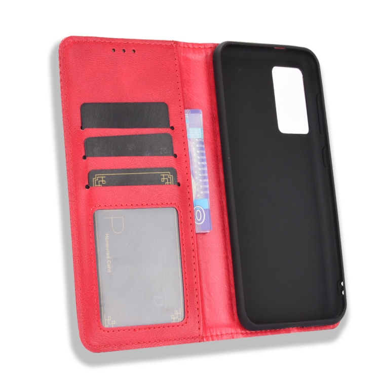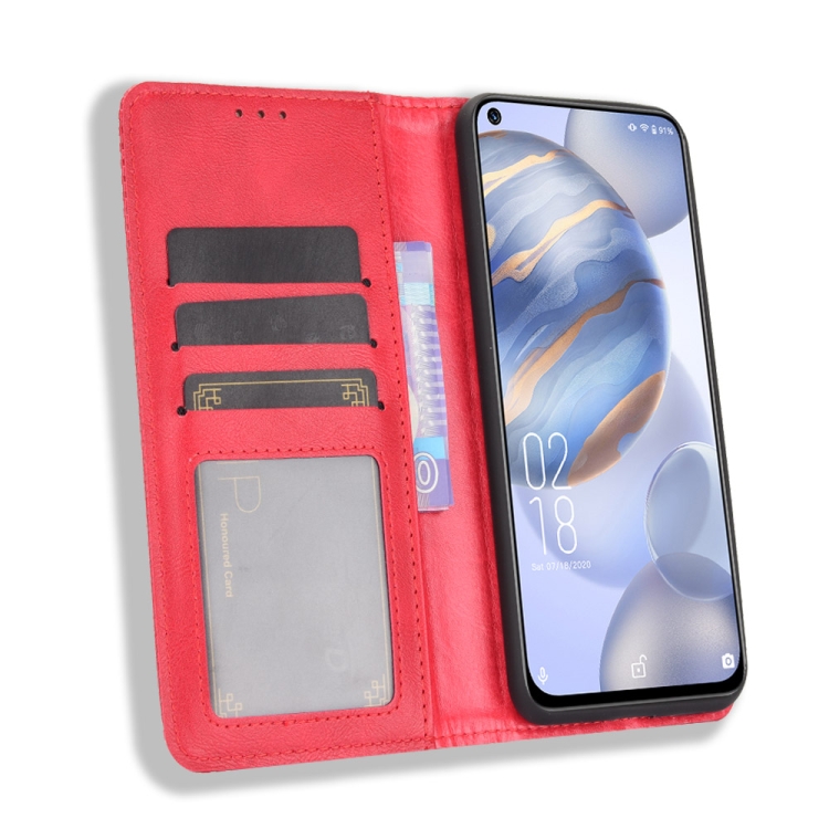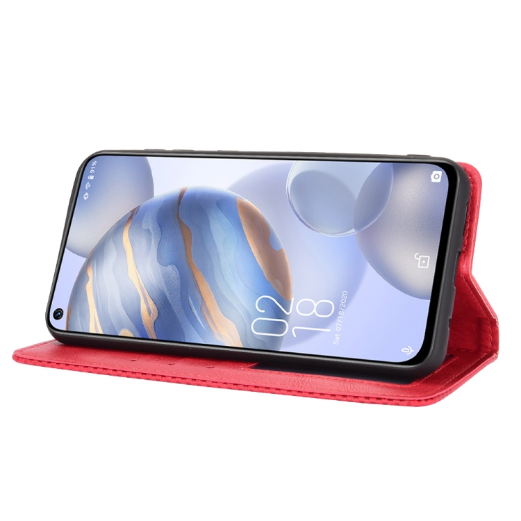 Funda de Cuero para Oukitel C21 con Hebilla Magnética, Soporte, Ranuras para Tarjetas y Marco de Fotos (Rojo)