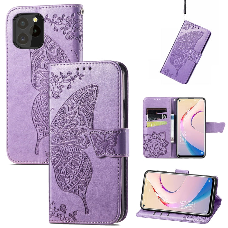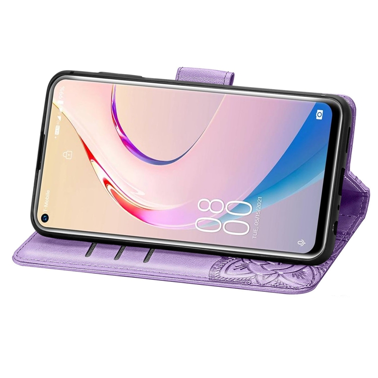 Funda de Cuero Horizontal para Oukitel C21 Pro con Soporte y Ranuras (Luz Púrpura)