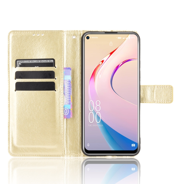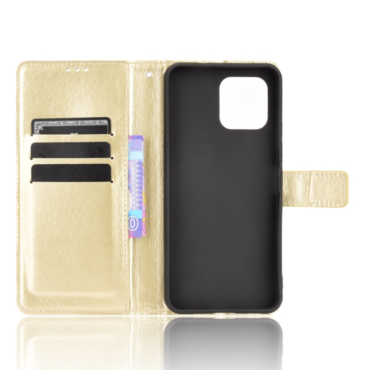 Funda de Cuero para Oukitel C21 Pro Crazy Horse Texture con Soporte, Ranuras y Cordón (Oro)