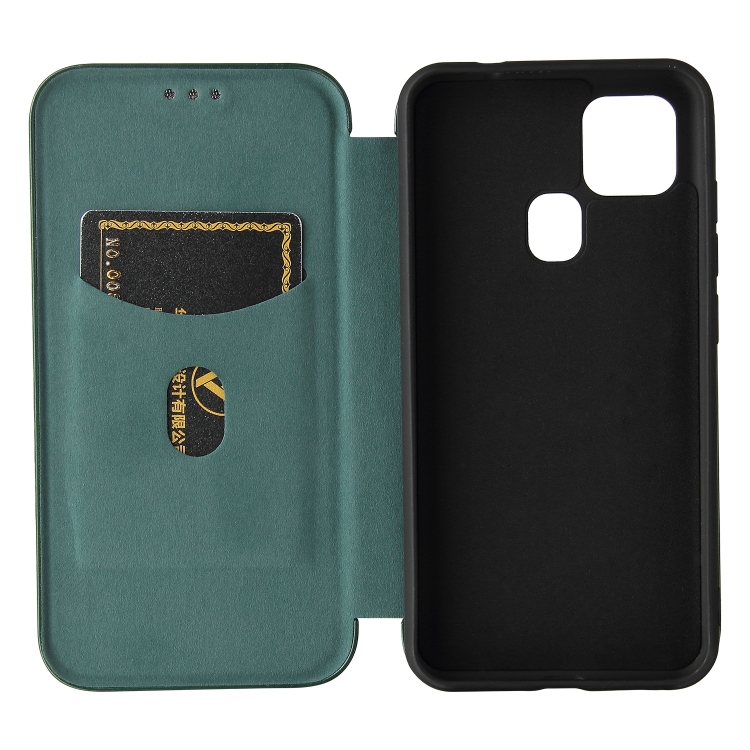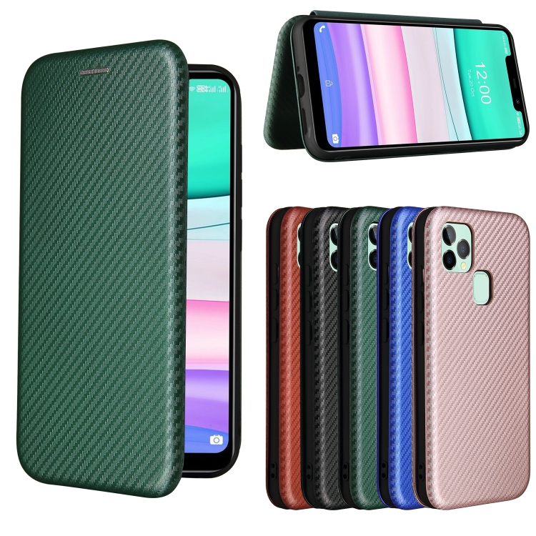 Funda para Oukitel C22 Fibra de Carbono Textura Magnética Horizontal Flip TPU + PC Cuero PU con Ranura (Verde)