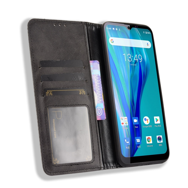 Funda Horizontal Flip Oukitel C23 Pro Hebilla Magnética Retro Crazy Horse con Soporte y Ranuras para Tarjetas (Negro)