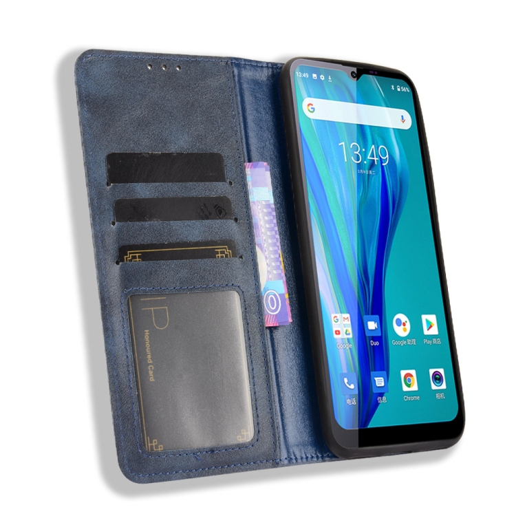 Funda Flip Oukitel C23 Pro Hebilla Magnética Retro Crazy Horse con Soporte y Ranuras (Azul)