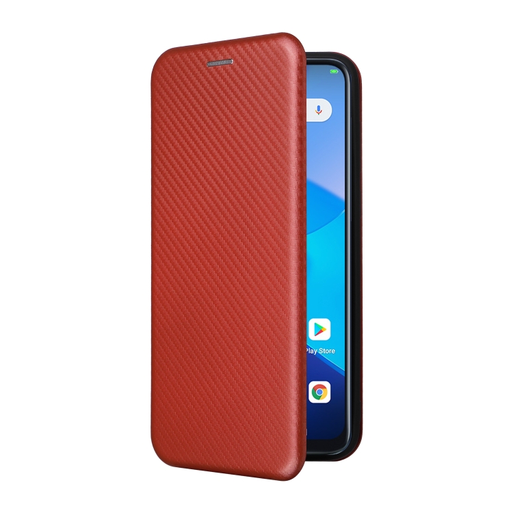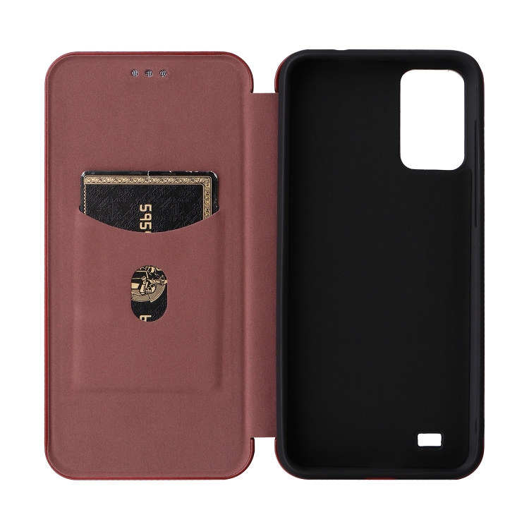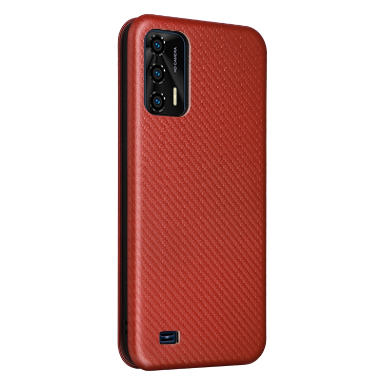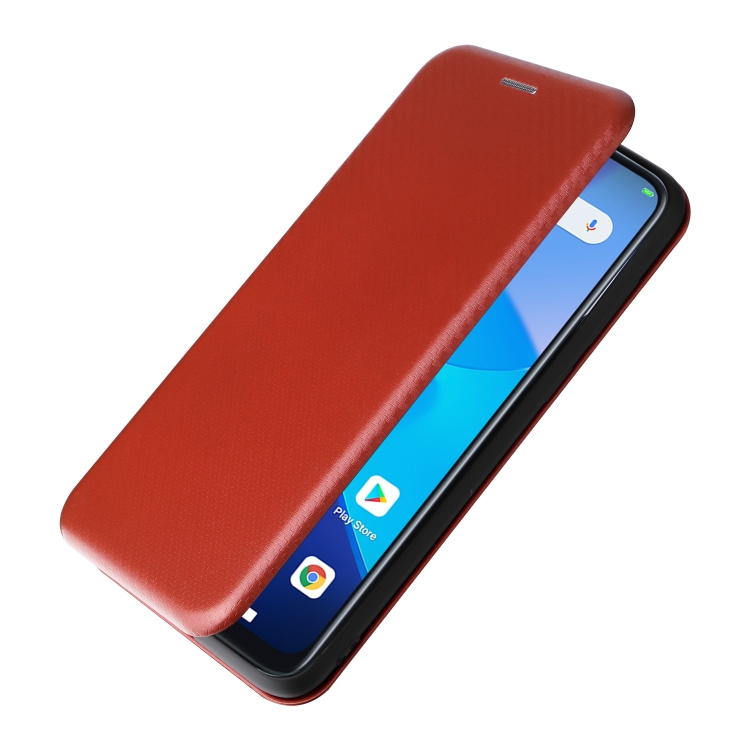 Funda de Cuero para Oukitel C31 con Textura de Fibra de Carbono (Marrón)